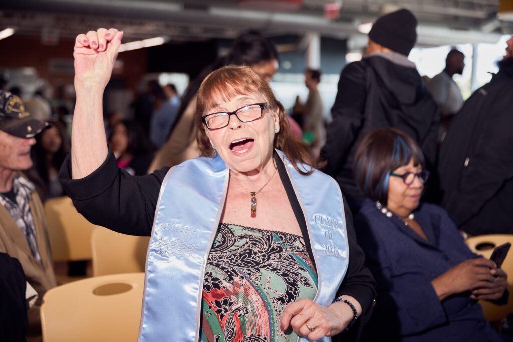 A student celebrates graduating from The Odyssey Project in 2025.